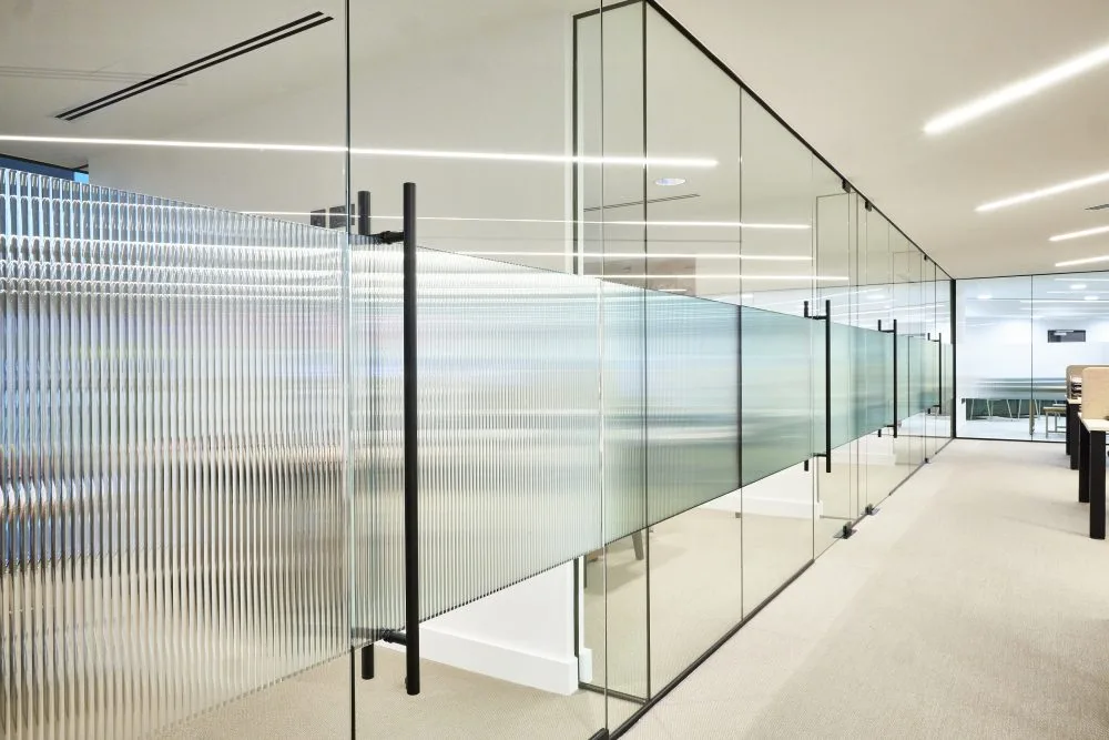 Перегородки из закаленного стекла отличное решение для раздельных кабинетов без потери света. Доступны варианты с матовым, тонированным стеклом